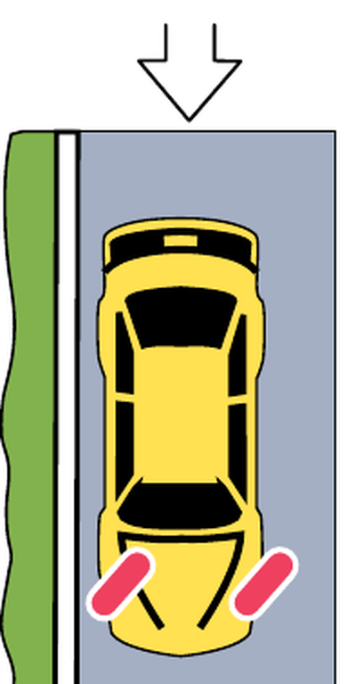 - According to the diagram, when a parked vehicle points downhill next to a curb, the front wheels should be turned: